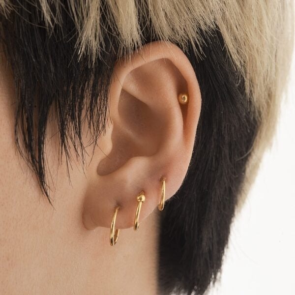Khuyên trơn cơ bản là mẫu đơn giản và dễ đeo nhất cho những anh chàng có xỏ hoặc bấm lỗ tai. Mẫu khuyên này có nhiều chất liệu từ hợp kim cho tới bạc, bạc trắng. Nhưng để cool ngầu nhất thì nên chọn hợp kim màu sáng các chàng nha.