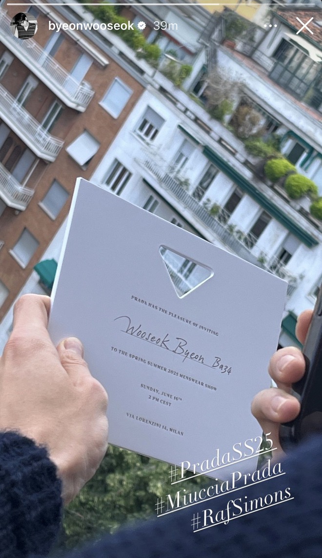 Không còn là đồn đoán, Byeon Woo Seok đã chính thức xuất hiện tại show diễn của Prada hôm nay. Anh dự show diễn của Prada SS25 trong khuôn khổ Milan Fashion Week với tư cách khách mời. Trước đó, khi lên đường ra sân bay đến Thái Lan tổ chứ Fan meeting, nam diễn viên đã lựa chọn 1 bộ cánh của Prada làm nổi lên dự đoán anh chàng sẽ có mặt tại show diễn ngày hôm nay.