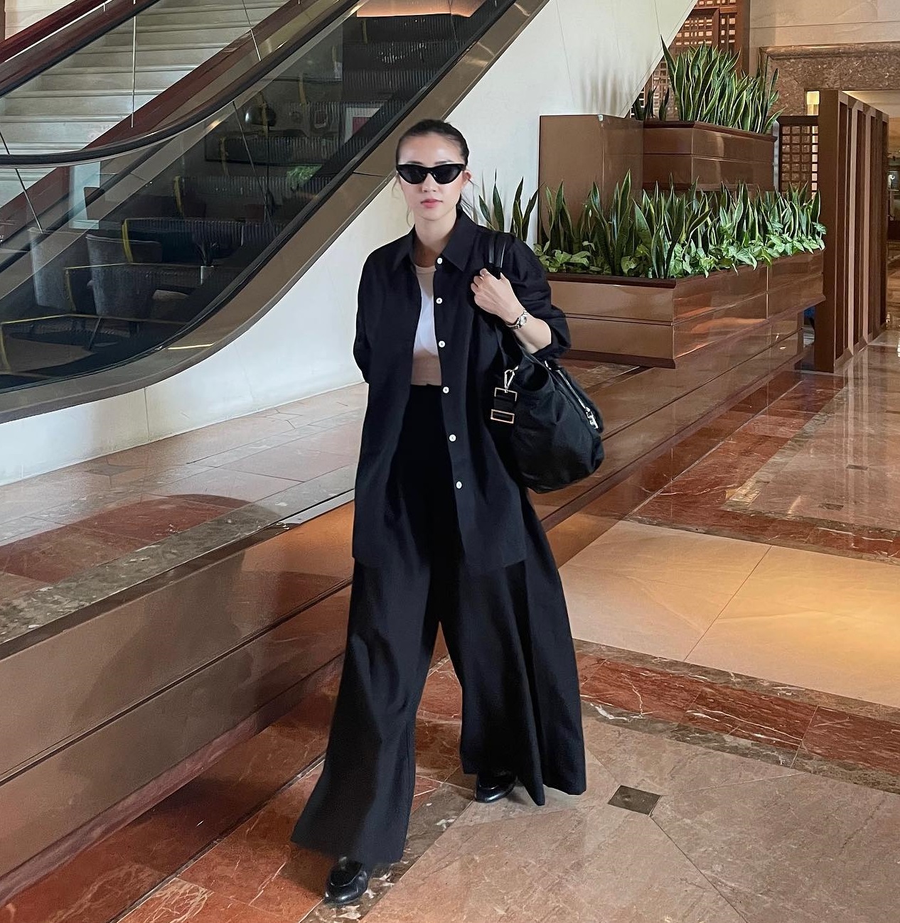 Có thể thấy rằng, các bộ trang phục nhiều lớp là đặc trưng phong cách của Salim. Cách phối đồ này mang đến sự phóng khoáng cho người diện. Với bộ trang phục gồm áo trắng, áo sơ mi dáng rộng và quần ống suông màu đen, Salim đã có được vẻ ngoài sành điệu nhưng không kém phần thanh lịch.