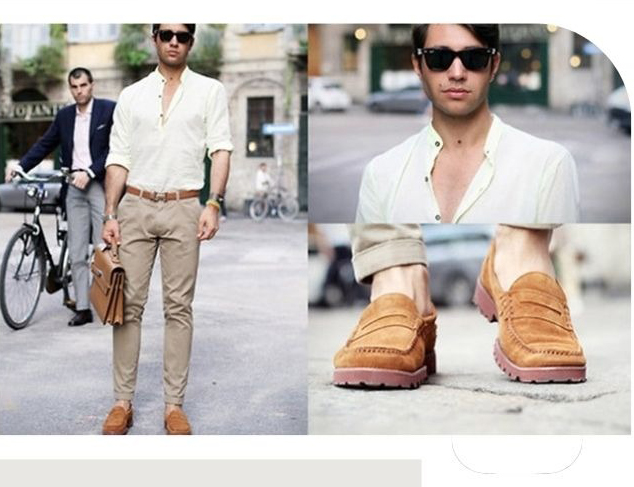 Kết hợp trang phục thời trang với giày loafer sử dụng khi đi chơi, đi du lịch cho phái mạnh. Sự tươi mới, thời thượng và phá cách chính là đặc trưng chung của những outfit này.