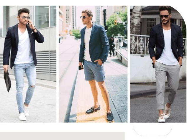 Những kiểu quần áo cơ bản mà trong tủ đồ nam nào cũng có sẽ là: áo thun trắng, quần jean, quần tây đen, quần short, áo sơ mi. Những item này khi kết hợp với giày loafer giúp nam giới vẫn sẽ trẻ trung và sự tinh tế cần thiết trong cuộc gặp mặt với người đối diện.
