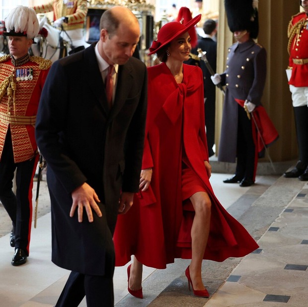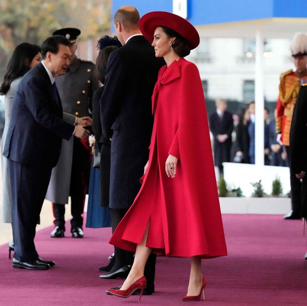 Tuy nhiên, có một chi tiết ít ai để ý rằng trang phục của Vương phi Kate và Vương hậu Camilla chính là sự kết hợp đầy tinh tế như một lời chào mừng cho chuyến thăm của Tổng thống và Đệ nhất phu nhân Hàn Quốc.