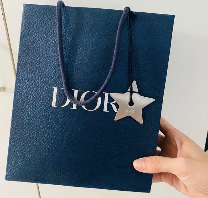Jimin trưng dụng tag ngôi sao trên túi giấy Dior thành phụ kiện cá nhân