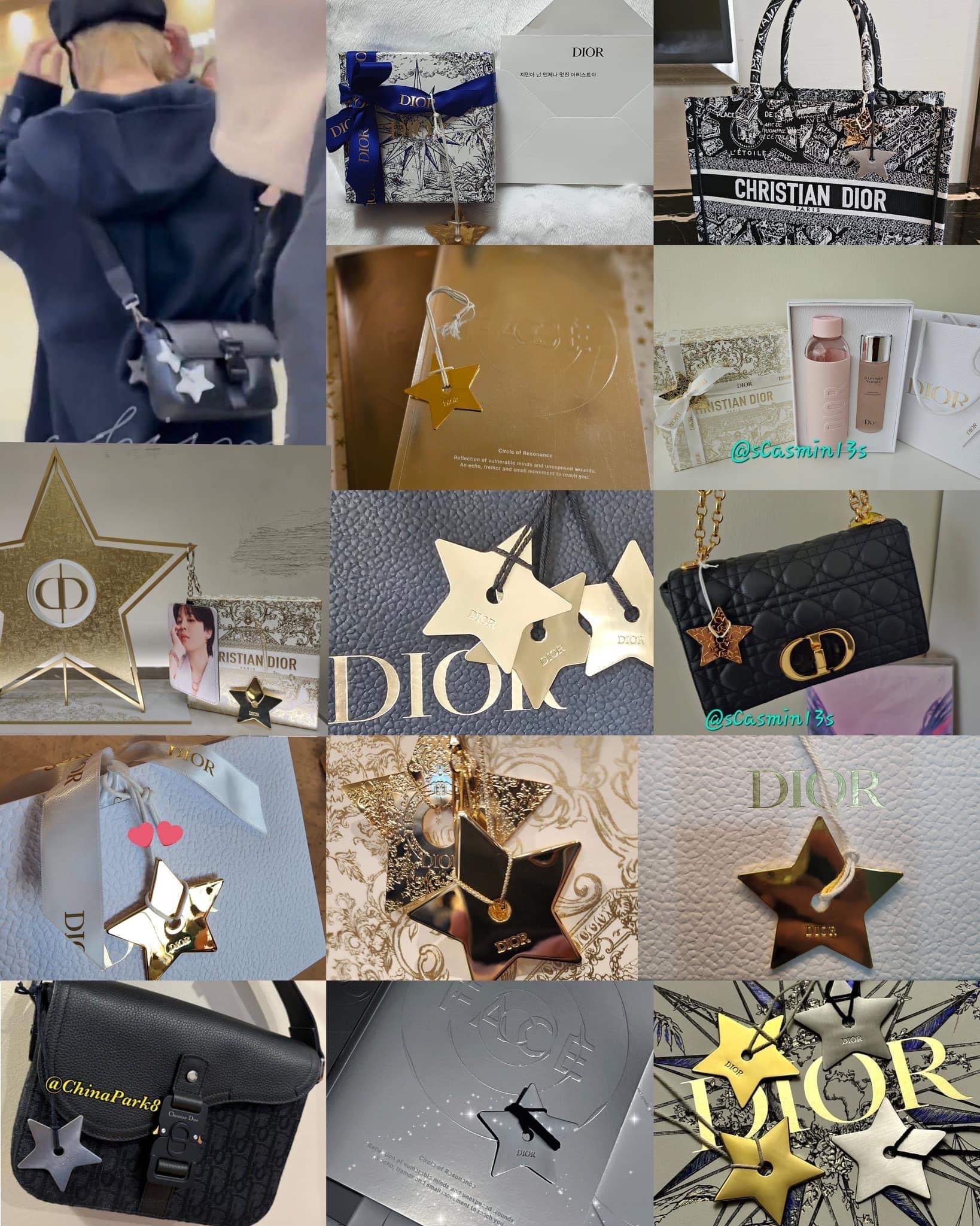 Jimin sử dụng tag sao đi kèm túi shopping bag của Dior làm phụ kiện trang trí
