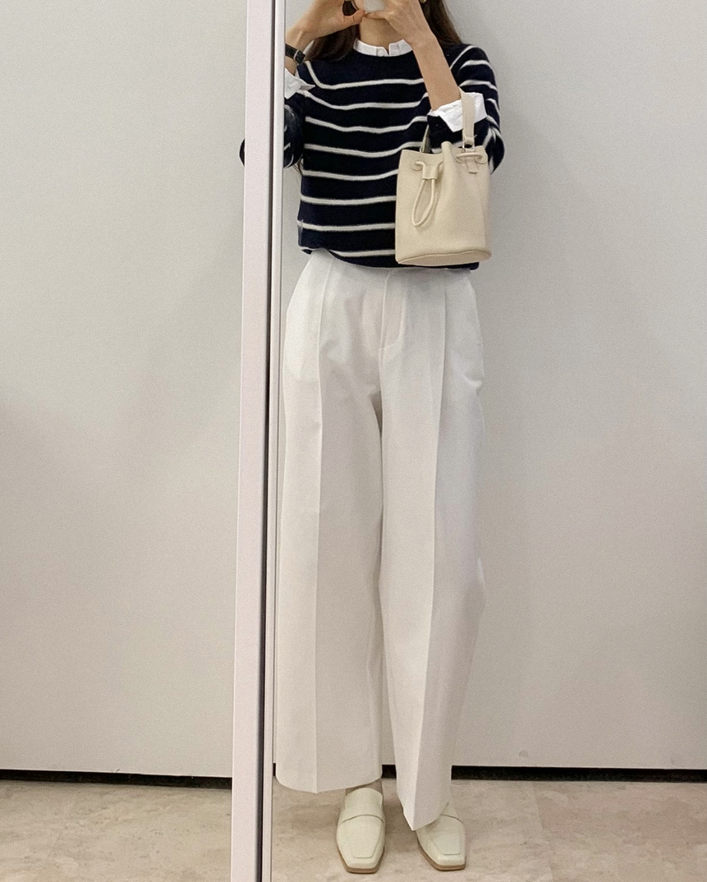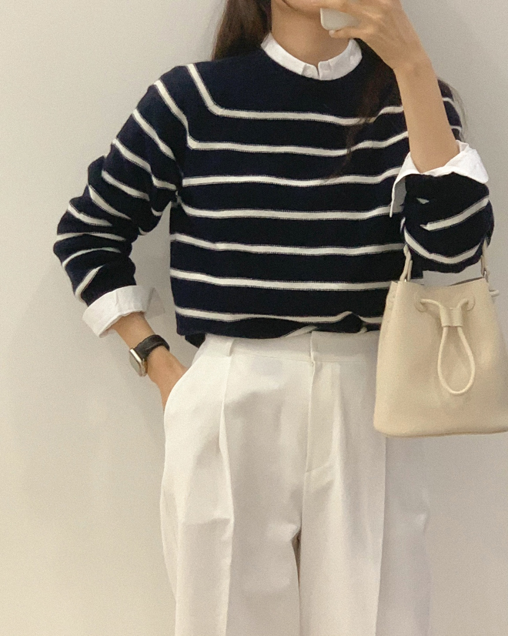 Một set đồ layer với áo len mỏng và sơ mi, khi mix cùng quần âu cũng cho ra một outfit thú vị cho ngày đầu năm mới. Áo len với những đường kẻ mảnh mai, nhẹ nhàng tô điểm cho nét thanh lịch chỉn chu, đẹp nhất là diện cùng quần âu đen cơ bản hay trắng sang chảnh để mỗi outfit đi làm ngày đầu xuân lại ghi điểm trọn vẹn.