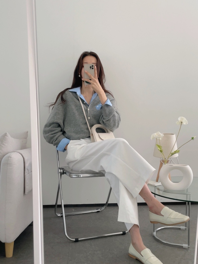 Thêm một công thức layer đơn giản nhưng chưa bao giờ khiến phái đẹp công sở phải thất vọng. Áo cardigan + sơ mi, điểm nhấn sang chảnh nằm ở cách bẻ cổ và tay áo ra ngoài áo len, nhấn nhá thêm một chiếc túi xách đơn giản hay đôi giày loafer xuyệt tông là hoàn hảo cho một set đồ công sở.
