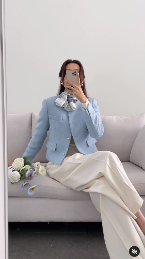 Những thiết kế blazer cách điệu dáng lửng luôn có khả năng hack chiều cao cực kỳ vi diệu, nhất là khi được sóng đôi cùng quần âu cạp cao đứng dáng. Gam màu xanh baby khéo léo hack tuổi, để nàng công sở trẻ xinh đến vài tuổi khi diện đồ đến sở làm hàng ngày. Chọn những món phụ kiện xuyệt tông sẽ thể hiện được sự khéo léo cũng như gu thời trang tinh tế của mình.