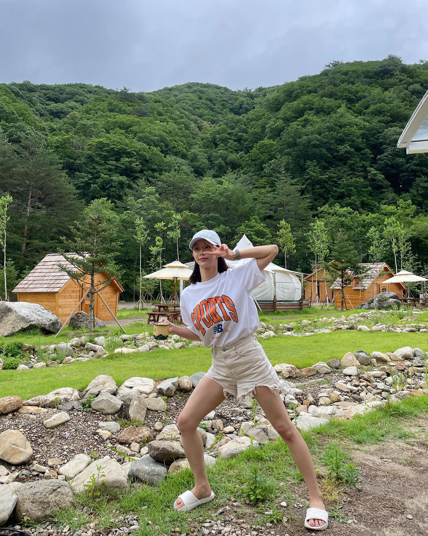 Tủ đồ của chị em không nên thiếu đi những chiếc quần jeans, đây là món thời trang dành cho mọi độ tuổi. Quần jeans rất dễ phối đồ và Lee Joo Bin đã nhân đôi hiệu quả "hack" tuổi bằng cách kết hợp mẫu quần này với áo thun trắng, áo màu pastel.