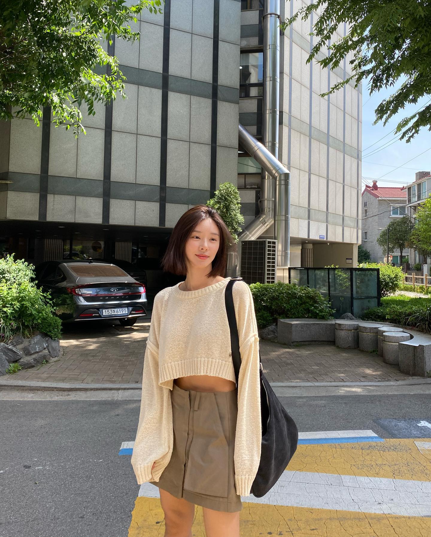 Chân váy ngắn vốn đã tôn dáng hiệu quả nhưng Lee Joo Bin còn "ăn gian" chiều cao khéo léo hơn bằng cách sơ vin hoặc ưu tiên thiết kế áo lửng. Mùa của những chiếc chân váy ngắn đã tới, chị em nên bổ sung các phiên bản như chân váy ngắn kaki, chân váy denim, chân váy ngắn dáng suông để phong cách thêm sành điệu.
