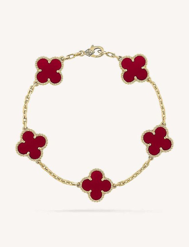 Cả hai "anh tài" này đều diện mẫu vòng Van Cleef & Arpels Alhambra màu đỏ của thương hiệu. Được biết, chiếc vòng được chế tác từ loại đá Carnelian tự nhiên (một số nơi cũng gọi đây là loại đá mã não đỏ), và phần dây xích được làm từ vàng 18K.