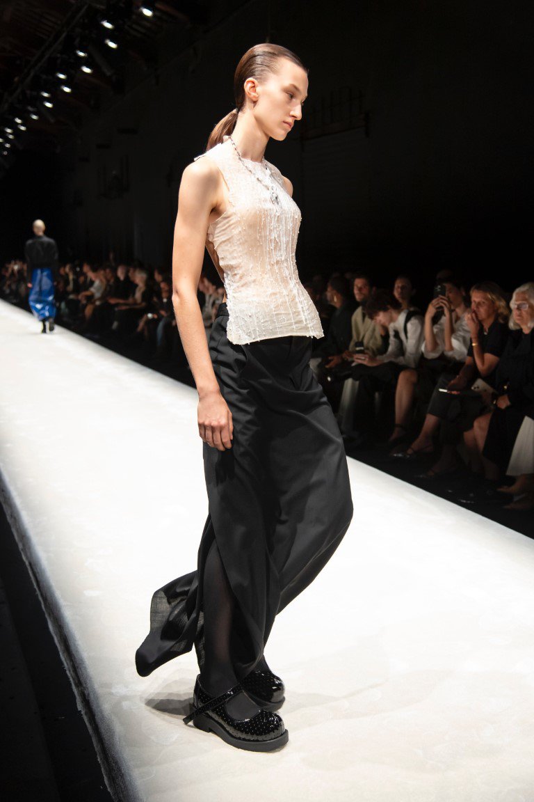 Với quần jean mom và các kiểu dáng cạp cao tương tự đang xuất hiện, vòng eo siêu thấp kiểu Y2K đã trở lại nổi bật ở mọi hình thức như quần jean, váy và váy dài. Để đối phó với sự trỗi dậy đột ngột của vòng eo thấp hơn đáng kể này, các sàn diễn Xuân Hè 2024 trên toàn thế giới thậm chí còn hạ thấp hơn nữa và đưa ra kiểu dáng “Drop waist”.