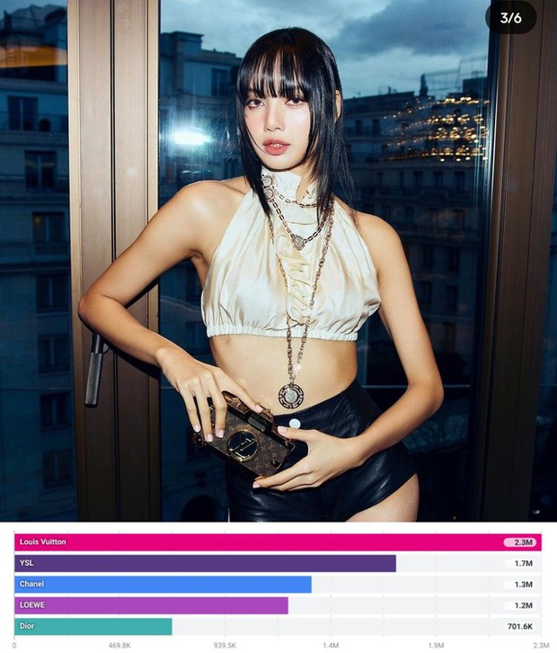 Bên cạnh những hình ảnh, khoảnh khắc bùng nổ tại show diễn, Lisa còn cho thấy sức ảnh hưởng ấn tượng của mình khi giúp Louis Vuitton tăng trưởng hơn 74%, trở thành thương hiệu được nhắc đến nhiều nhất trên MXH, vượt mặt Chanel, Dior chỉ trong vòng chưa đầy 24 giờ kể từ khi kết thúc.