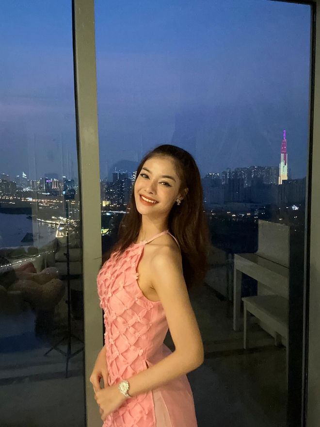 Hoa hậu Thùy Tiên khoe trọn bờ vai trần mảnh mai trong thiết kế áo dài cách tân cổ yếm. Không chọn layout make up sắc lạnh, nàng Hậu nhẹ nhàng e ấp với mái tóc đen suông thẳng kết hợp mấn đội đầu xuyệt tông với áo dài. Như thể nàng xuân đang về gần hơn bao giờ hết khi ngắm Thùy Tiên khoe sắc.