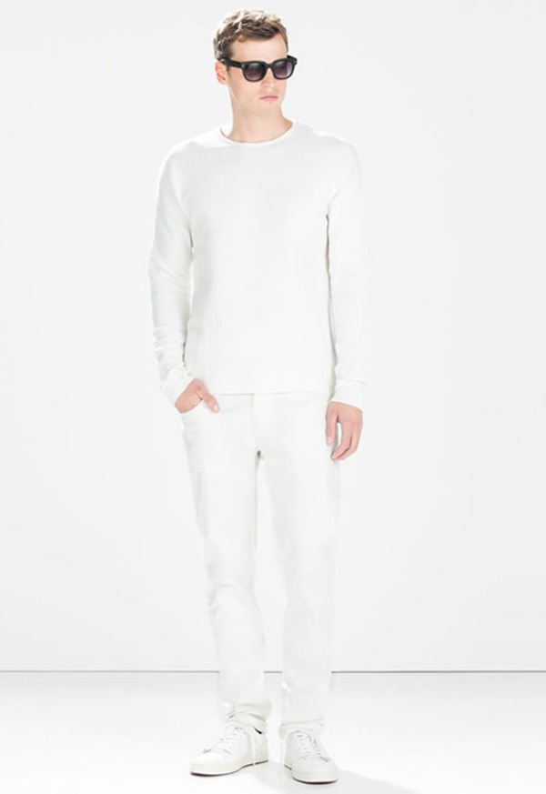 Quần jeans trắng nam phối với áo thun mang đến sự năng động, trẻ trung nhưng cũng không kém phần sành điệu. Có thể nói đây là sự kết hợp cơ bản, an toàn và dễ thực hiện nhất trong số những item thời trang khác.