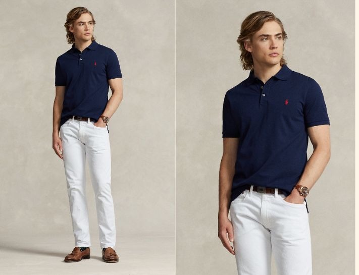Đại diện cho phong cách smart casual, quần trắng và áo polo mang đến cảm giác khỏe khoắn và tươi mới cho người mặc. Trên thực tế, áo polo có khá nhiều kiểu dáng, màu sắc khác nhau, bạn cần dựa vào vóc dáng để lựa chọn trang phục phù hợp.