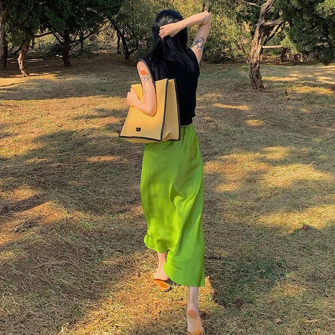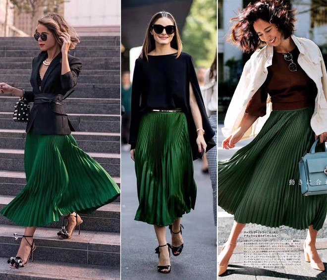 Gam màu xanh dành cho chân váy hè này là tông xanh bơ và xanh măng tây, nếu như chị em thích cũng có thể thử với gam màu xanh ngọc lục bảo.