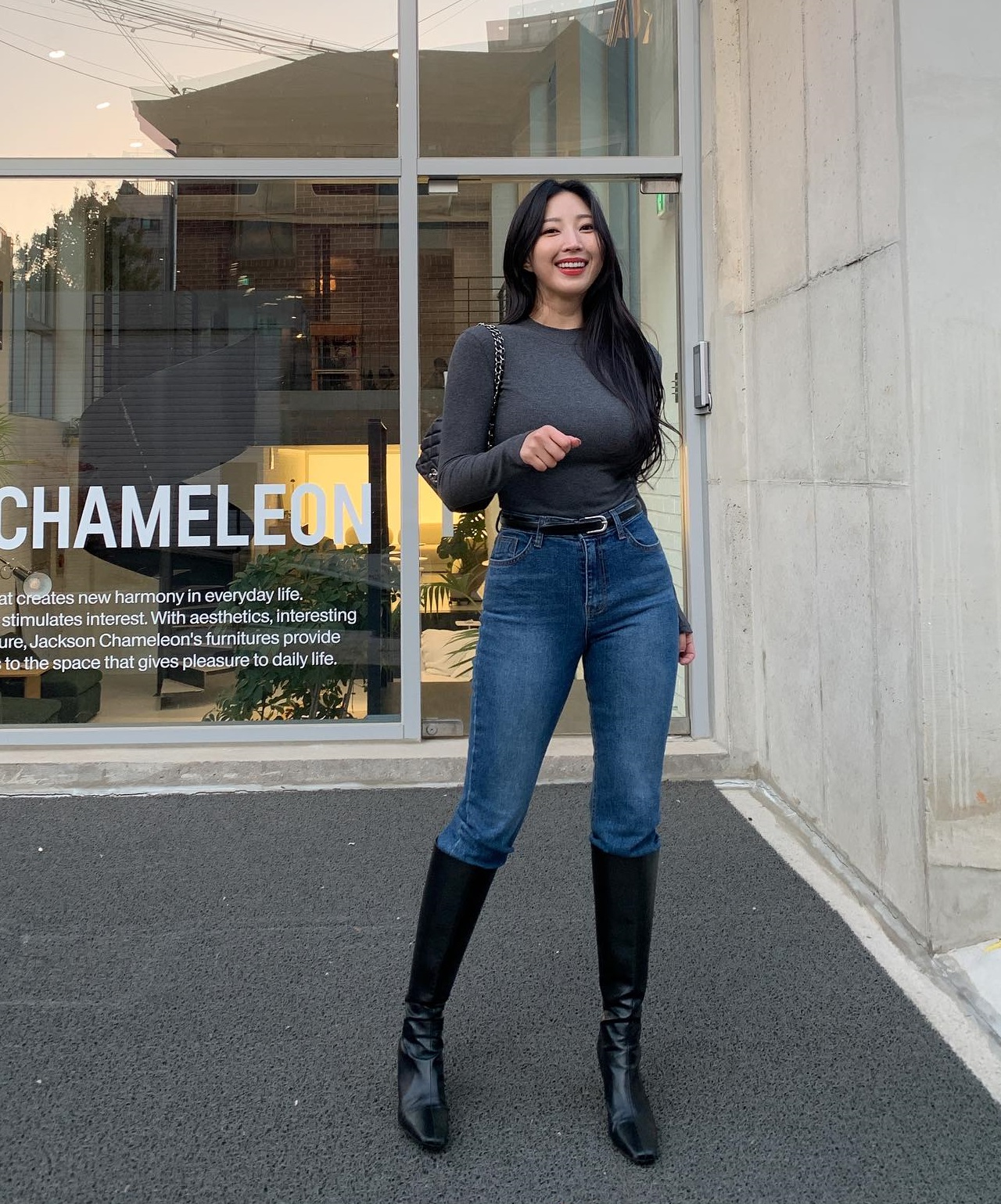 Ngoài ra, món thời trang này còn tôn lên nét nữ tính và quyến rũ của người diện. Quần skinny kết hợp rất ăn ý với boots cao cổ, mang đến sự trẻ trung, sành điệu cho tổng thể trang phục. Đây cũng là bộ đôi đem tới hiệu quả kéo chân dài hơn, từ đó giúp vóc dáng thêm cao ráo. Các nàng có thể kết hợp quần skinny và boots cao cổ với áo khoác lửng trẻ trung hoặc áo khoác dài thanh lịch. Dù chọn cách diện nào, chiều cao cũng được "ăn gian" hiệu quả nhờ bộ đôi quần skinny và boots cao cổ.