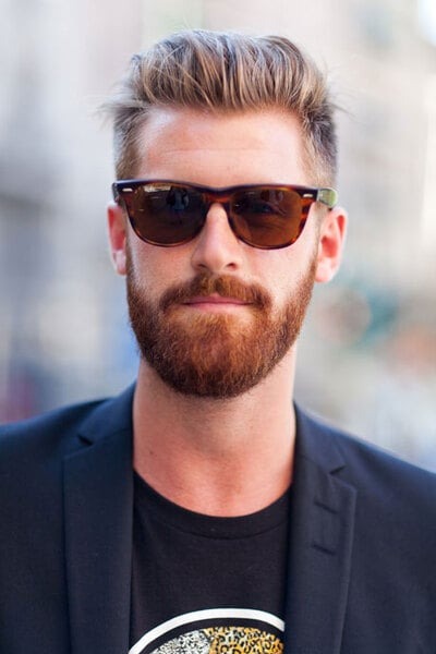 Cằm rộng + trán hẹp là 2 từ dùng để diễn tả những bạn nam có gương mặt hình tam giác. Để bạn nam trông cuốn hút hơn khi đeo kính râm, bạn có thể chọn kính dáng cánh chuồn chuồn kính gọng mèo. Lưu ý nên chọn kính sẫm màu thôi nhé, để gương mặt trong cân đối hơn.