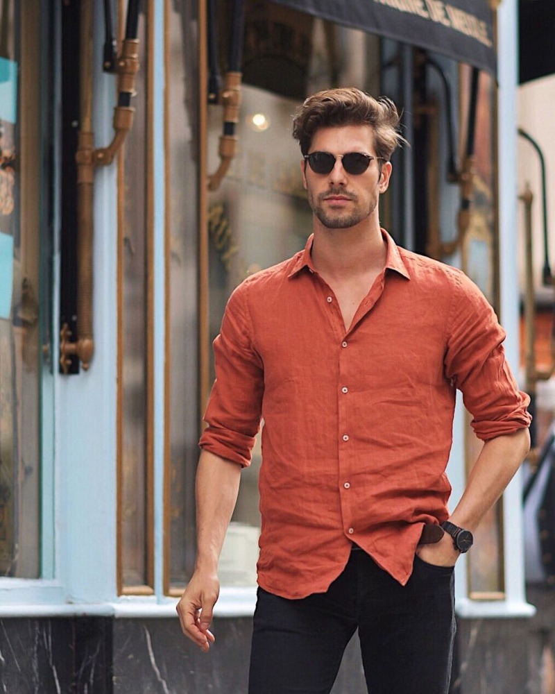 Màu cam trẻ trung, tươi mới sẽ khiến cho set đồ của các quý ông mạng hỏa trở nên nổi bật và thu hút hơn bao giờ hết. Không chỉ vậy, màu cam còn đem lại cho người diện mệnh hỏa nhiều điều may mắn trong cuộc sống. Màu cam có thể được mix cùng màu tím, màu trắng, nâu,...để tạo nên một outfit hợp mốt.