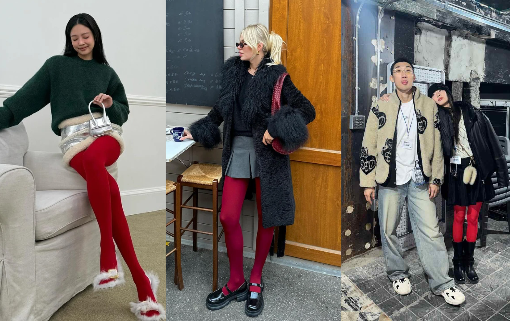 Có thể thấy, dân tình thường phối quần tất đỏ với các item màu basic như đen, xám, trắng, be nhằm tạo hiệu ứng tương phản. Tuy nhiên, dưới sức sáng tạo mạnh mẽ của các bạn trẻ, cách phối tất đỏ ngày càng đa dạng về phong cách và chất liệu và trở thành item "must-have" trong tủ đồ của các cô gái hiện đại.