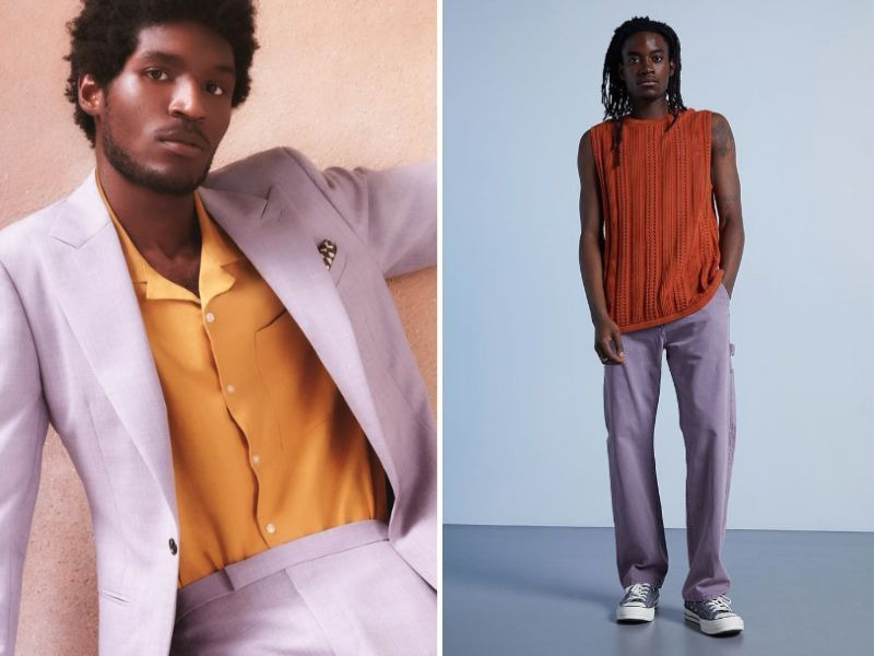 Không ít người cho rằng quần tím khi phối với áo cam sẽ tạo nên bộ trang phục “thảm họa”. Nhưng trên thực tế, việc kết hợp màu tím pastel với màu cam neon chính là “bản phối” cực thời trang và nổi bật. Sự chói mắt của màu cam và nhẹ nhàng của màu tím sẽ giúp chàng sở hữu phong cách thời trang cool ngầu. Cách mix đồ này thường được các fashionista áp dụng để tạo dấu ấn, cá tính riêng.