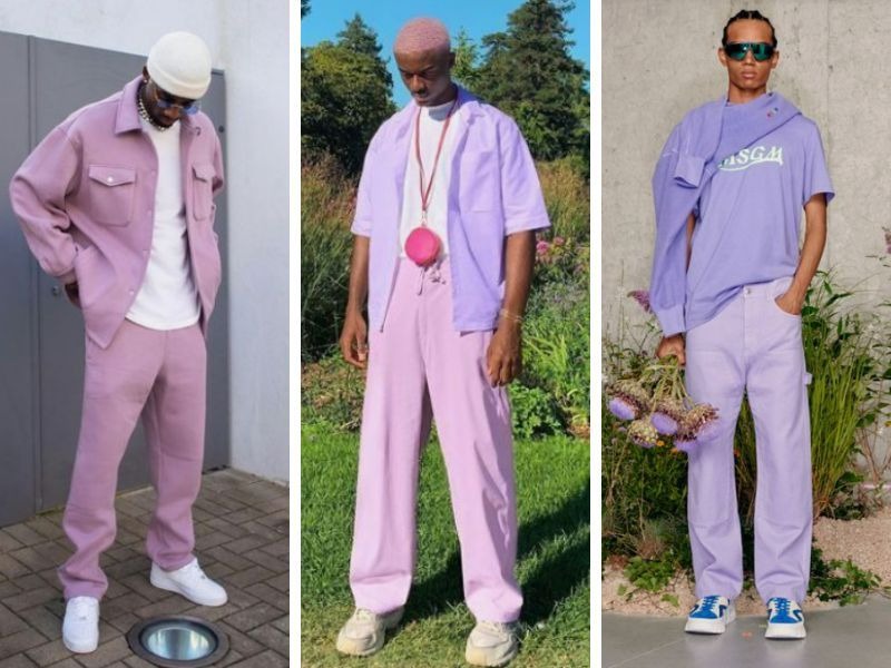 Dựa theo nguyên tắc phối đồng màu, quần tím phối áo tím sẽ tạo nên set đồ giúp bạn gây ấn tượng cực mạnh với mọi người xung quanh. Chàng có thể ưu tiên lựa chọn trang phục với gam màu tím lavender hoặc tím lilac cho set đồ của mình.
