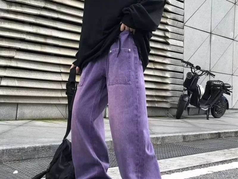 Áo tím kết hợp quần jean