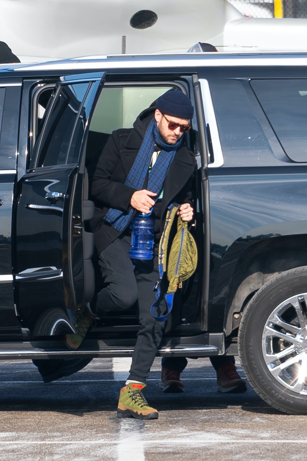 Ngoại trừ những cách mang thường thấy là trên ngực hay ở bụng, fanny pack còn có thể được biến tấu độc đáo để diện như một kiểu túi tote khoác hờ lên vai hoặc cầm tay. Bạn có thể sẽ cảm thấy kỳ lạ với tên gọi túi đeo chéo nhưng lại không thực sự đeo nó, dù vậy, hãy mạnh dạn phá cách và thử xem. Để chiếc túi thật sự trở thành điểm nhấn, bạn nên lựa chọn màu sắc túi khác biệt so với màu sắc chính của quần áo. Tuy nhiên, một số chi tiết trên trang phục hay vài món phụ kiện vẫn cần có sự đồng bộ nhất định cùng túi để nó không trở nên lạc quẻ. Hình ảnh của Justin Timberlake dưới đây là một ví dụ hoàn hảo cho kiểu mang túi này. Anh lựa chọn fanny pack màu xanh rêu kết hợp cùng trang phục tông đen chủ đạo và đôi giày thể thao cũng mang cùng sắc rêu để tăng độ liên kết, thống nhất cho tổng thể nhưng vẫn đảm bảo chiếc túi đủ nổi bật.