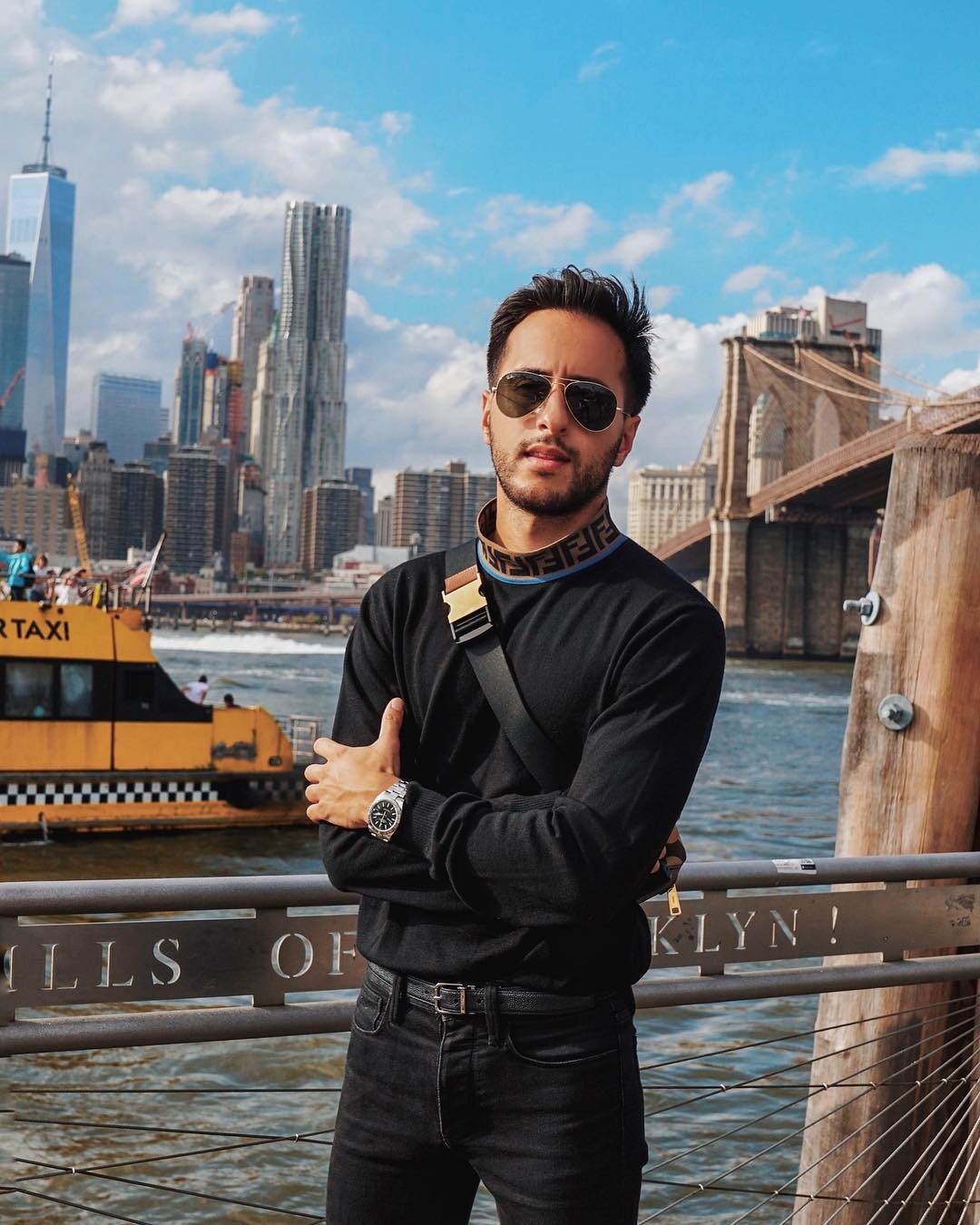 Bạn có thể thử diện fanny pack trước ngực và biến nó trở thành điểm nhấn cho cả bộ trang phục ngày hôm ấy. Đây cũng chính là cách đeo phổ biến mà giới trẻ ngày nay mix & match với kiểu túi này. Tuy nhiên, ở phong cách này bạn nên lưu ý mang túi đeo chéo hơi cao hơn ngực đôi chút, phối cùng quần áo màu sắc đơn giản để không gây rối mắt và giúp người khác chỉ tập trung vào điểm cần thiết. Hãy nhìn vào cách phối túi của Joey Zauzig, anh là một chàng trai có ảnh hưởng nhất định trong phong cách thời trang đường phố. Chiếc túi màu đen của thương hiệu Prada trông thật thời thượng khi kết hợp cùng trang phục có gam màu trung tính, tối giản.