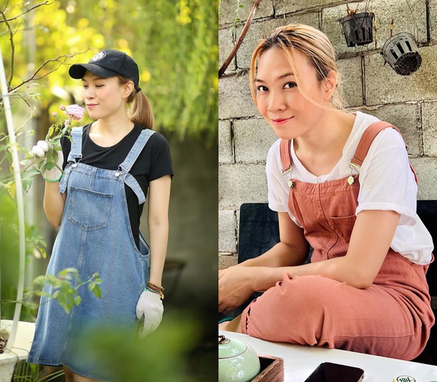 Bên cạnh quần jeans dáng thụng, quần/váy yếm cũng là một item hack tuổi được Mỹ Tâm diện khá nhiều. Cô thường chọn những kiểu quần rộng để tạo độ thoải mái và cũng tạo hiệu ứng cho vóc dáng thon gọn hơn. Kết hợp cùng quần hay váy yếm, Mỹ Tâm chọn những kiểu áo phông trơn đơn giản, mái tóc buộc gọn để phô diễn gương mặt thanh tú.