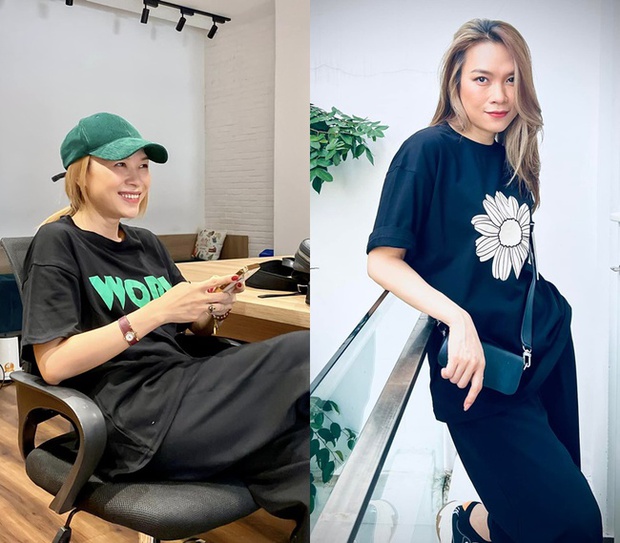 Diện áo phông đen tối màu với những hình in thú vị nhưng không quá lòe loẹt và rối mắt, Mỹ Tâm nhìn trẻ trung phong cách không thua gì các cô nàng mới đôi mươi. Những set đồ basic tuyệt đối nhưng vẫn tạo nét riêng, hack tuổi cực siêu cho style tuổi 40+ của Mỹ Tâm.
