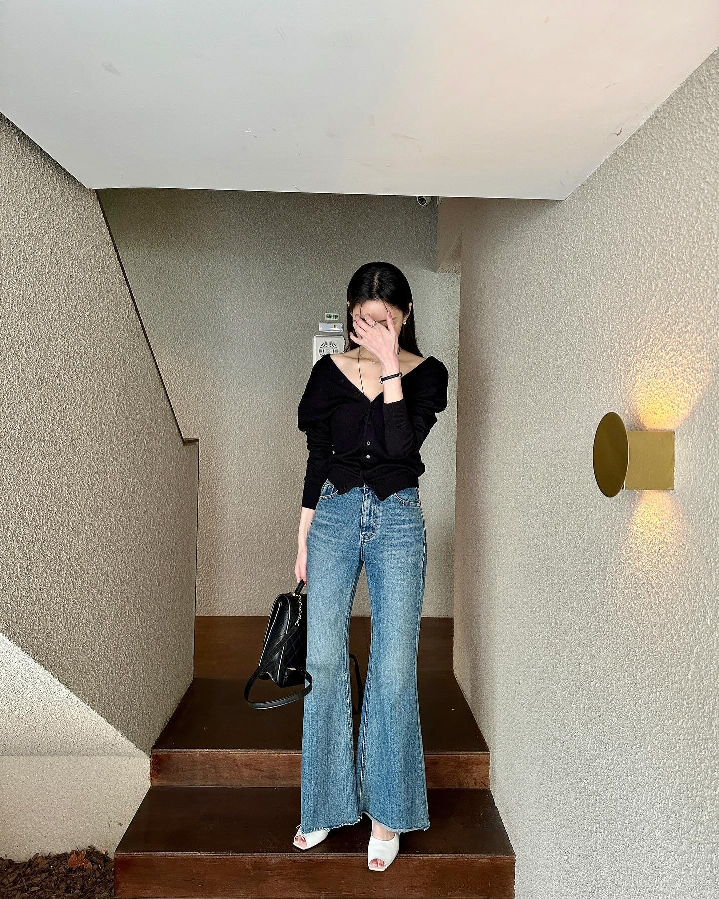 Quần jeans là món thời trang bụi bặm, phóng khoáng nhưng cũng rất phù hợp với phong cách tối giản. Kiểu quần này giúp vẻ ngoài trở nên nổi bật, trẻ trung hơn mà vẫn có nét thanh lịch. "Bí kíp" diện quần jeans chuẩn đẹp là kết hợp cùng áo sơ mi, áo thun màu trung tính, áo blouse tay bồng và không quên sơ vin gọn gàng. Bên cạnh đó, việc tô điểm thắt lưng da cho outfit cũng giúp các quý cô trên 40 tuổi nâng tầm phong cách hiệu quả.