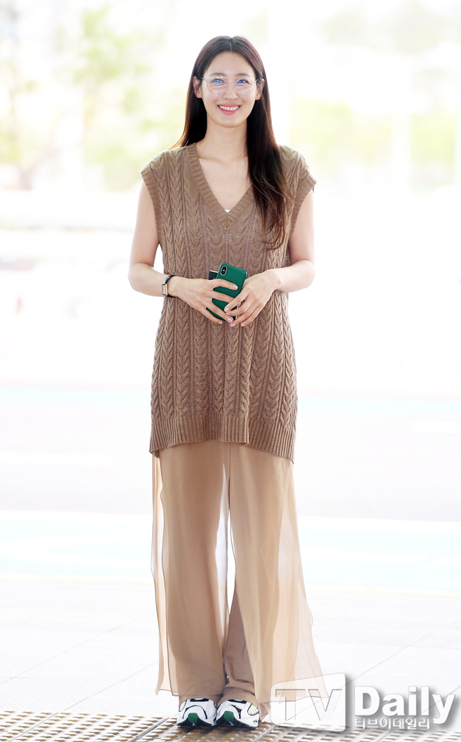 Bộ trang phục của Claudia Kim khá mới lạ với áo gile màu be, quầu âu và chân váy xuyên thấu layer bên ngoài. Outfit trên không chỉ độc đáo mà còn ghi điểm tinh tế nhờ tông màu be làm chủ đạo.