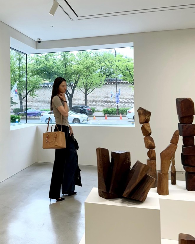 Diện set đồ tối giản gồm áo thun ôm dáng và quần ống suông, Claudia Kim vẫn gây ấn tượng. Bộ trang phục của cô ghi điểm ở sự trẻ trung, hiện đại xen lẫn nét tinh tế. Outfit được nâng tầm nhờ đôi giày cao gót mũi nhọn, mang tông màu đen.
