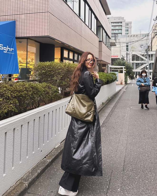 Chị em có thể "ghim" những cách diện đồ mùa đông của Claudia Kim từ bây giờ, vì các công thức này không bao giờ lỗi mốt. Sự kết hợp giữa áo dáng dài vải da, quần âu màu đen, giày sneaker trắng đã tạo nên bộ trang phục sang trọng nhưng không kém phần cá tính, trẻ trung.