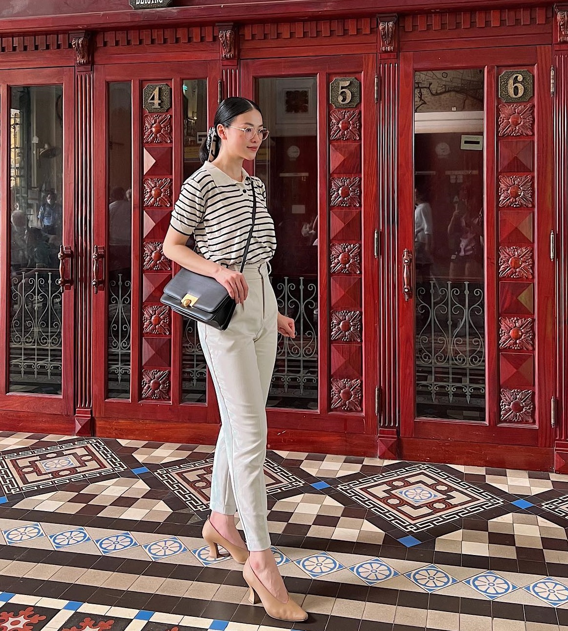 Vào những ngày mùa thu ấm áp, áo thun vẫn là món thời trang được nhiều chị em ưa chuộng. Các mỹ nhân Việt cũng không bỏ qua kiểu áo này khi hoàn thiện phong cách. Ưu điểm của áo thun là sự năng động, khỏe khoắn. Vậy nên mẫu áo này "hack" tuổi rất hiệu quả. Để có được vẻ ngoài thanh lịch khi diện áo thun, các mỹ nhân Việt thường ưu tiên áo thun tông màu trắng hoặc áo thun họa tiết kẻ ngang, rồi kết hợp với quần màu trung tính. Những công thức diện áo thun này dễ áp dụng, đặc biệt phù hợp với quý cô ngoài 30 tuổi.