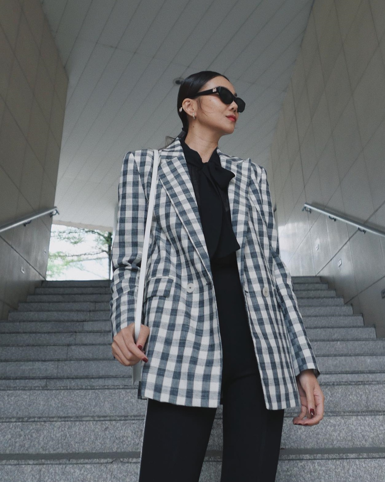 Tủ đồ mùa thu khó có thể thiếu đi những chiếc áo blazer. Vốn dĩ, kiểu áo này gây ấn tượng ở sự thanh lịch, trang nhã. Tuy nhiên, áo blazer cũng có thể mang đến nét trẻ trung, nếu bạn ưu tiên áo dáng rộng. Các mỹ nhân Việt biến hóa đa dạng với blazer, thay vì chỉ diện áo màu đen, họ còn ưu ái blazer tông màu be, pastel hoặc phủ họa tiết nổi bật. Không khó để mặc đẹp với blazer, bạn chỉ cần kết hợp mẫu áo này cùng sơ mi, áo thun và quần jeans hoặc quần âu, vậy là có được bộ trang phục sành điệu.