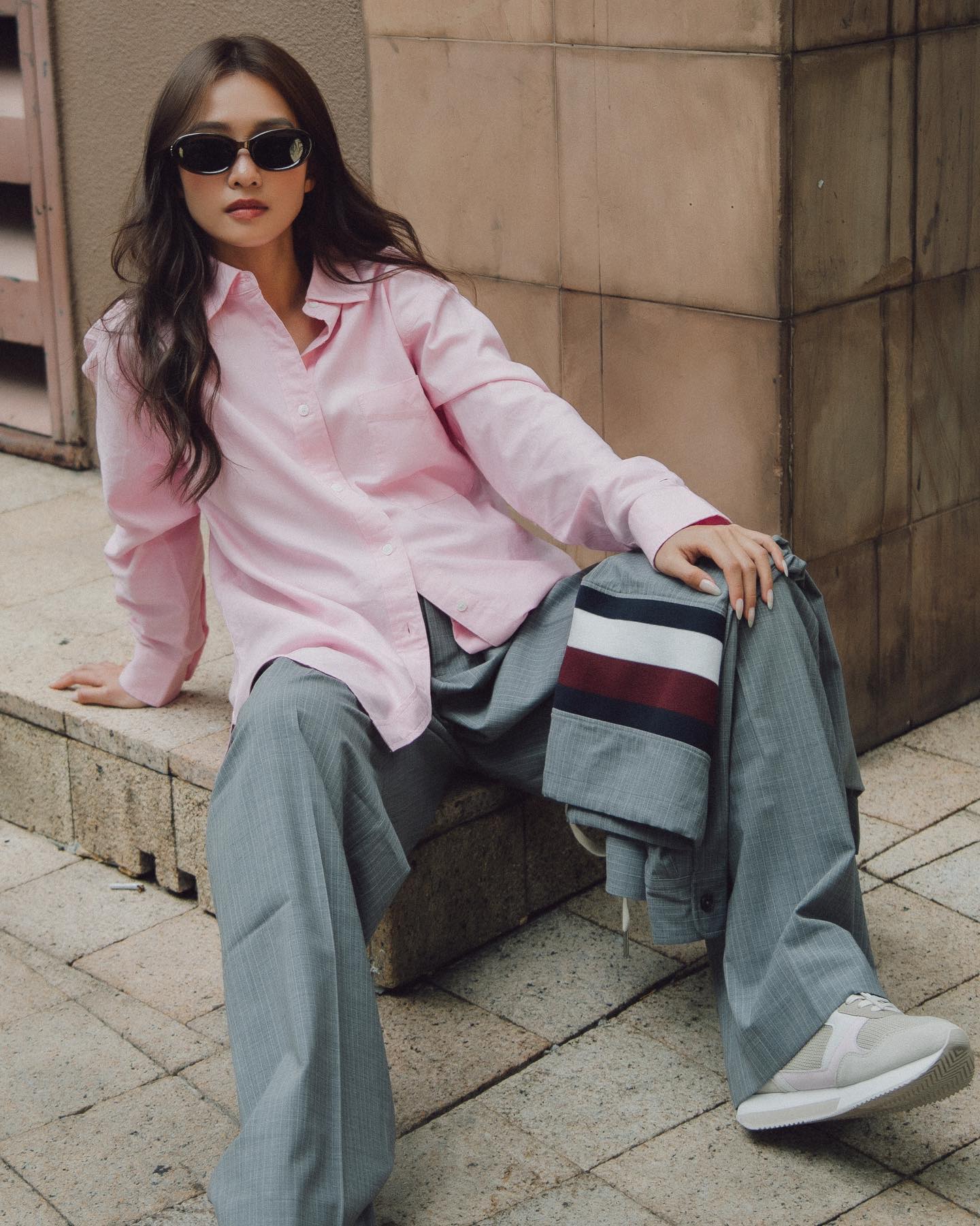 Áo sơ mi vẫn là món thời trang "kinh điển" vào mỗi mùa hè và thu. Kiểu áo này ghi điểm ở sự thanh lịch, trang nhã. Khi chọn áo sơ mi mang tông màu sáng như trắng hay pastel, vẻ ngoài sẽ thêm phần trẻ trung và rạng rỡ. Vốn dĩ, áo sơ mi sáng màu đã nổi bật nên các mỹ nhân Việt chỉ kết hợp với quần đơn giản, mang tông màu trang nhã để vẻ ngoài có được sự hài hòa, thanh lịch.