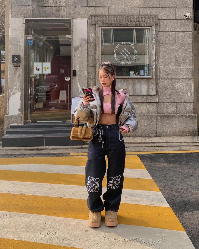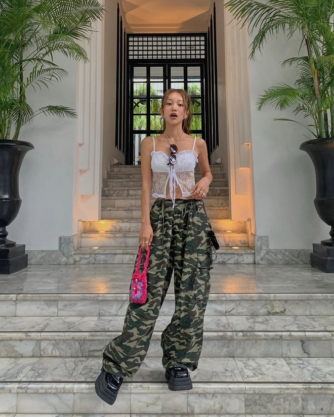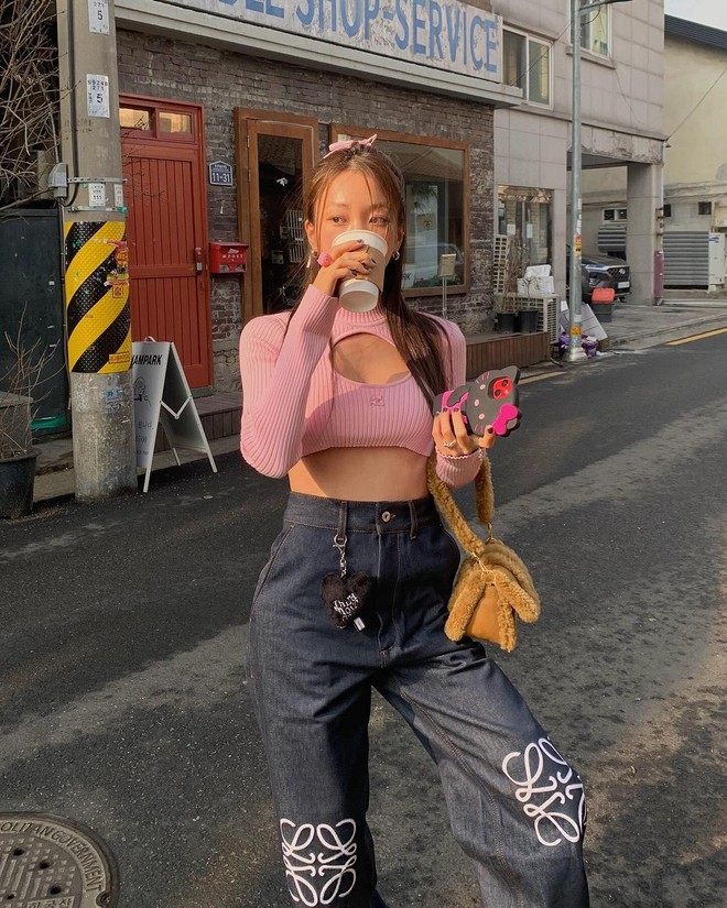 Với @mulbada, cô thường chọn các mẫu quần có cạp cao, mix&match cùng áo croptop khéo léo khoe eo thon khoẻ khoắn.