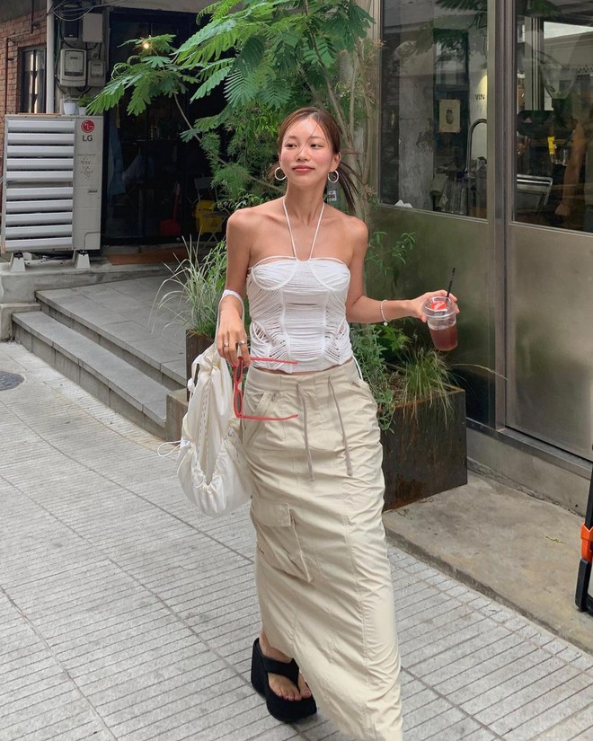 Bên cạnh quần ống rộng, chân váy dài sẽ là sự lựa chọn hoàn hảo khi muốn vừa hack dáng, che khuyết điểm mà vẫn có thể điệu đà, nữ tính hơn của nữ fashion blogger.