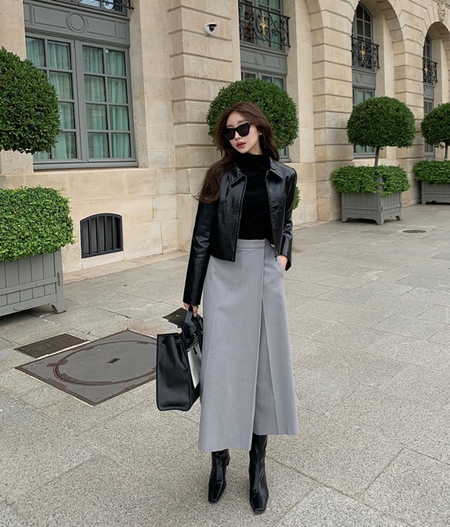 Mùa Hè, các quý cô không còn xa lạ với những mẫu quần giả váy năng động. Song ngay cả trong mùa Đông, quần giả váy vẫn rất được ưa chuộng. Nếu sợ lạnh, bạn hãy chọn quần giả váy dáng dài thay cho dáng ngắn, vừa kín đáo, ấm áp lại tuyệt đối thanh lịch, hợp diện cả đi chơi lẫn đi làm. Quần giả váy dáng dài chỉ cần mix đơn giản với áo thun, áo len ôm nhẹ, thêm áo khoác dáng lửng bên ngoài là đã khoe trọn được vẻ đẹp của từng item. Ngoài ra, bạn nên chọn quần và áo mix cùng có tone màu đối lập nếu muốn vóc dáng thêm cân đối.
