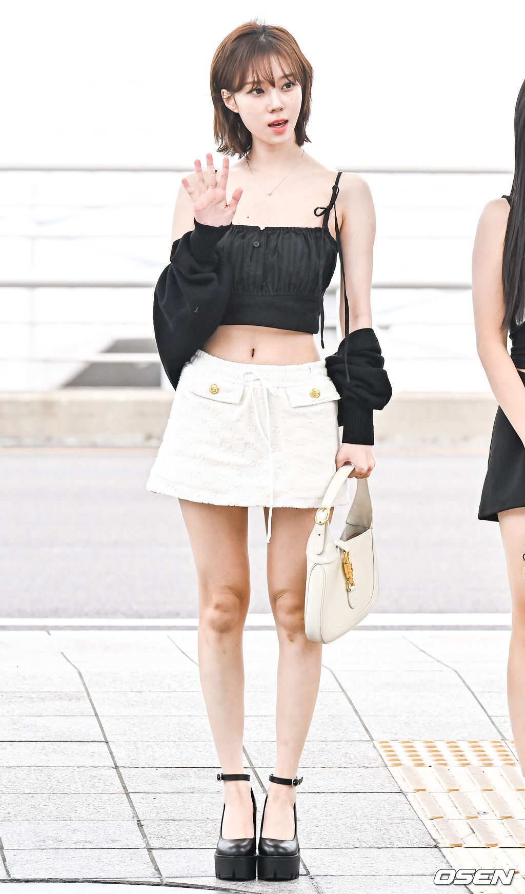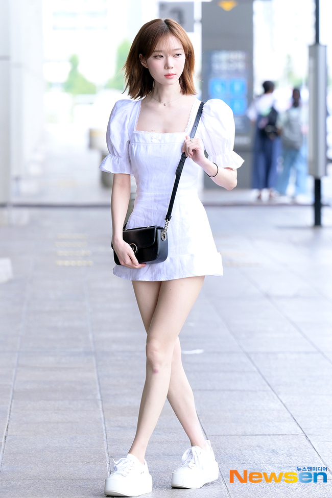 Công thức áo crop top và chân váy trắng giúp tôn dáng tối ưu. Bộ trang phục này còn mang đến cho người diện sự trẻ trung, nổi bật. Tổng thể outfit trở nên thời thượng hơn khi được hoàn thiện bằng đôi giày độn đế.