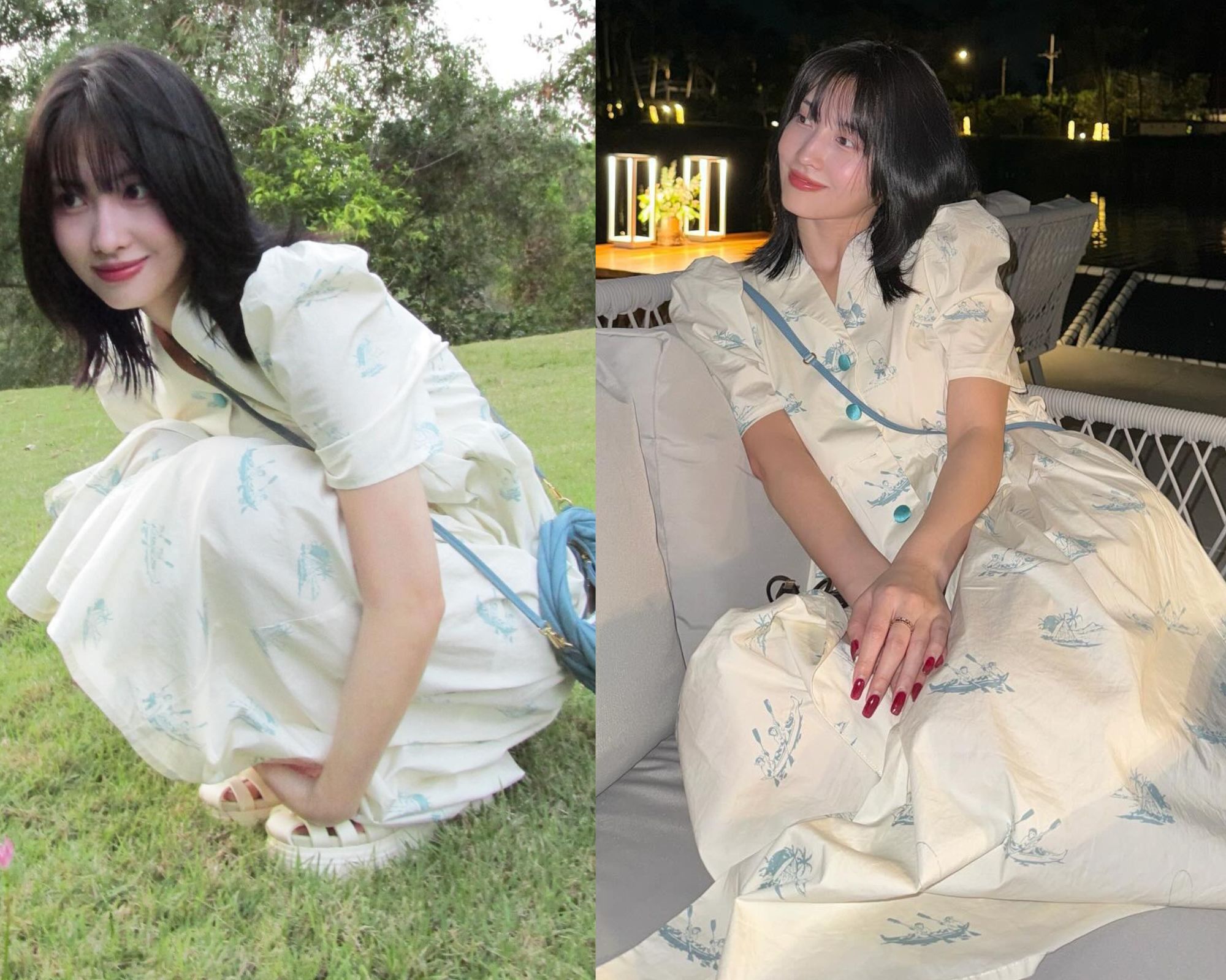 Váy liền là món thời trang phù hợp với mùa lễ hội. Chưa cần chọn thiết kế quá cầu kỳ, chỉ cần ưu tiên mẫu váy trắng cổ vuông, tay bồng, các nàng đã có ngay vẻ ngoài nổi bật. Đôi giày sneaker trắng tăng thêm hiệu quả "hack" tuổi nhưng vẫn ăn nhập với nét trang nhã, nữ tính của mẫu váy.