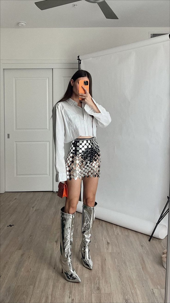 Màu sắc này hẳn không thể không liệt kê vào danh sách này bởi nó mang lại phong thái sang trọng, quý phái và tao nhã. Diện những item như chân váy, đầm màu ánh kim sẽ khiến các nàng trông vừa lộng lẫy, vừa nổi bật mà không hề nhàm chán trong không gian tràn ngập sắc đỏ đặc trưng của dịp lễ Giáng sinh.
