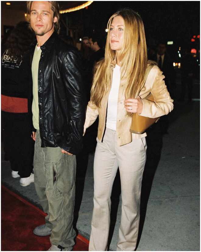 Và sẽ là thiếu sót khi bỏ qua couple style của Jennifer Aniston cùng chồng cũ - nam diễn viên Brad Pitt trong khoảng thời gian này. Cặp đôi vàng quyền lực của Hollywood một thời đã đem tới những look cuốn hút, mang đậm dấu ấn tình yêu nhưng vẫn vô cùng phong cách.