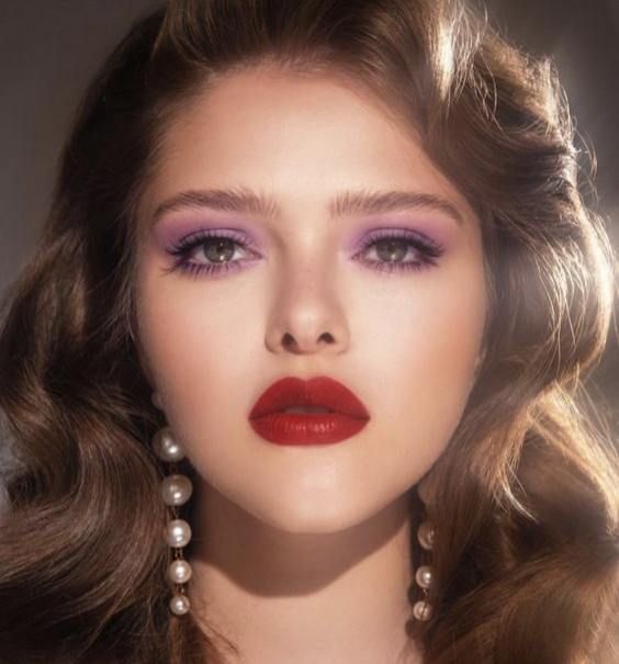 Màu sắc ấn tượng mạnh là những gì thường thấy ở cô nàng vừa cá tính vừa yêu thích phong cách vintage. Từ lớp nền đã có, hãy dùng cọ tán thêm lớp phấn hồng nhẹ nhàng ở hai má. Với đôi mắt, bạn có thể tạo điểm nhấn nhẹ nhàng với màu bạc, sử dụng lông mi giả loại mỏng nếu muốn. Điều này sẽ giúp đôi mắt quyến rũ hơn. Sau đó, bạn có thể sử dụng màu hồng tím hoặc hoàn toàn ánh tím để trang điểm môi. Màu môi này là lựa chọn tuyệt vời cho phong cách vintage mạnh mẽ.