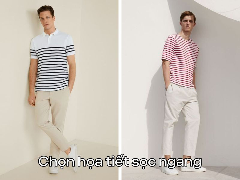 Nếu yêu thích các kiểu họa tiết kẻ sọc, bạn cần chọn những món đồ kẻ sọc ngang. Nhờ hiệu ứng của những chiếc sọc ngang sẽ giúp bạn trông đầy đặn và cân đối hơn. Tuyệt đối không lựa chọn họa tiết sọc dọc nhé. Nếu bạn chọn kiểu họa tiết này sẽ càng khiến bạn trông “cò hương” đấy.
