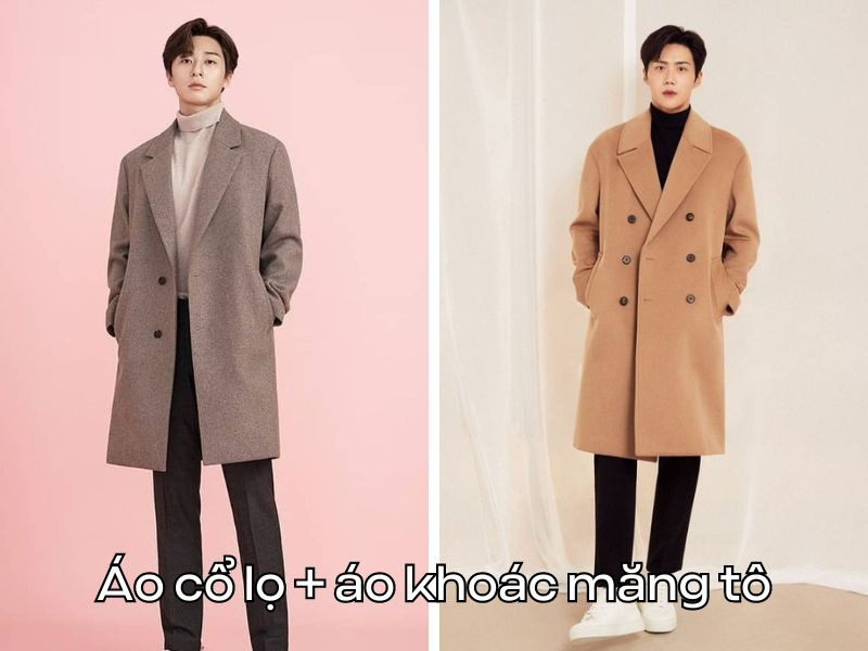 Phối áo cổ lọ + áo khoác măng tô dáng dài
