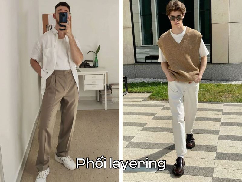 Để trông phong cách và sành điệu hơn, chàng có thể chọn phối đồ theo phong cách layering với áo thun basic ở trong, sau đó khoác thêm áo sơ bên ngoài. Bạn có thể chọn áo thun trắng ở trong và những chiếc áo sơ mi màu sắc hơn bên ngoài.