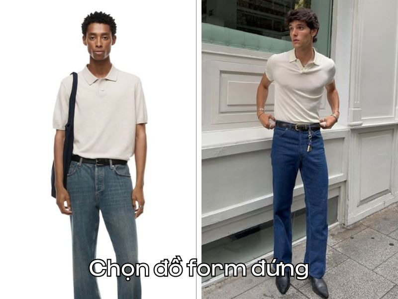 Thêm một tiêu chí mà nam giới cần lưu ý khi chọn quần áo cho mình chính là nên chọn đồ vừa vặn với cơ thể. Không nên chọn những kiểu đồ ôm body, quần skinny. Những món đồ này sẽ càng làm lộ sự thiếu cân trên cơ thể của chàng.